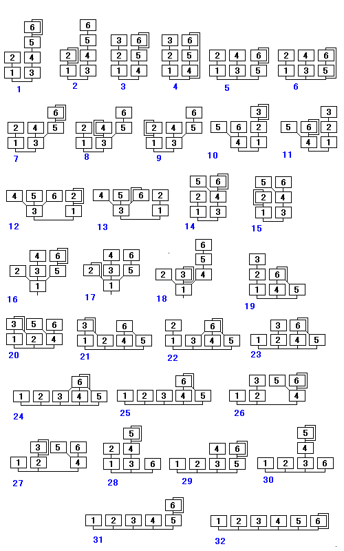 DTMに関する用語としては、FM音源のオシレーター(オペレータ)の組み合わせ方を表す場合がある。6オペレータのFM音源では、DX7で用いられていた下の図のような32種類の組み合わせがアルゴリズム1~アルゴリズム32として使用される事が多い。図中、1~6の四角はオペレータを表し、縦に積み重なっている場合は上段のオペレータが下段のオペレータに変調を掛ける。また線がループする箇所がそれぞれ一箇所あるのはオペレータの出力で自分自身を変調するフィードバックを表している