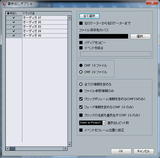 例えばキューベースでOMFにエクスポートしソナーでインポートする、というようにしてマルチトラックのデータの移行を行う事ができる。ただし、OMFで扱う事ができるのはオーディオ(およびビデオ)トラックの情報だけであるため、MIDIの情報を交換するためには別途SMFでやり取りするなどの手順が必要となる。もちろんこの際に移行先のDAWで同じ音を出すためには両方のDAWで同等のシンセサイザーやエフェクターをアサインする必要がある