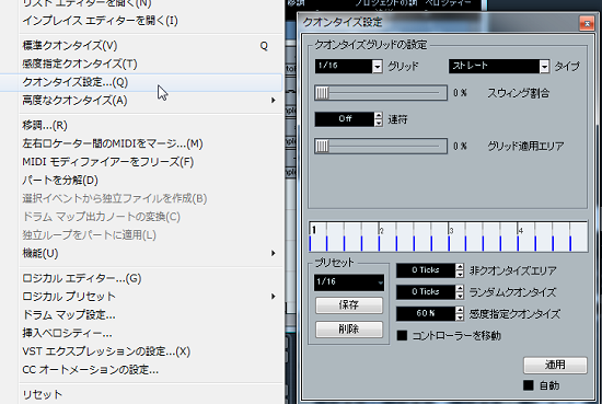 MIDIシーケンサの機能の一つで演奏データのタイミングのズレを補正する効果の事