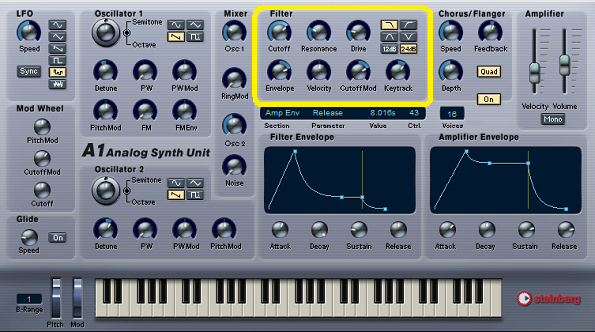 アナログシンセサイザーの重要な構成要素の一つであり、減算合成のシンセサイザーの音色を決める主要なモジュールである。 一般的なシンセサイザーのフィルターは、ローパスフィルター(LPF)であり、カットオフ周波数、レゾナンス(またはQ)がパラメータとなっているものが多く、また、減衰傾度の切り替えができるものもある。 デジタルシンセサイザーでは DCF (Digital Controlled Filter) という名前に付け替えられたがこの名前はそれほど広くは使われてはおらず、そのままVCFや単にフィルターと呼ぶ事も多い。